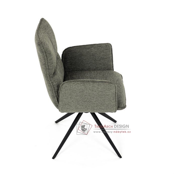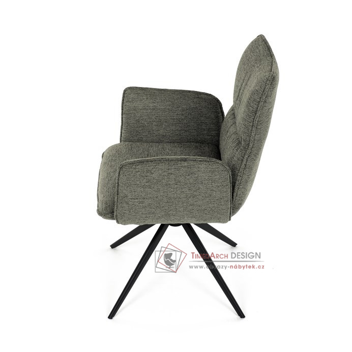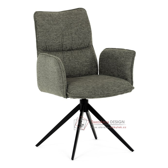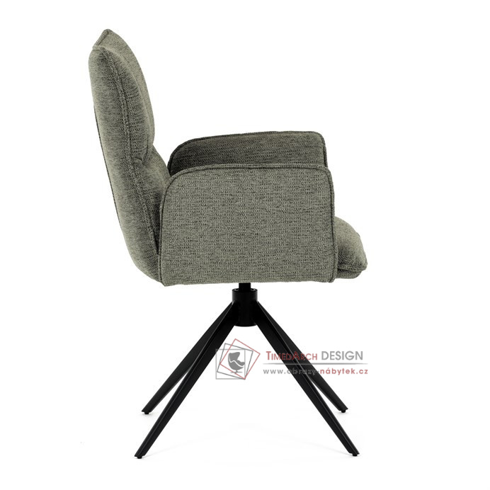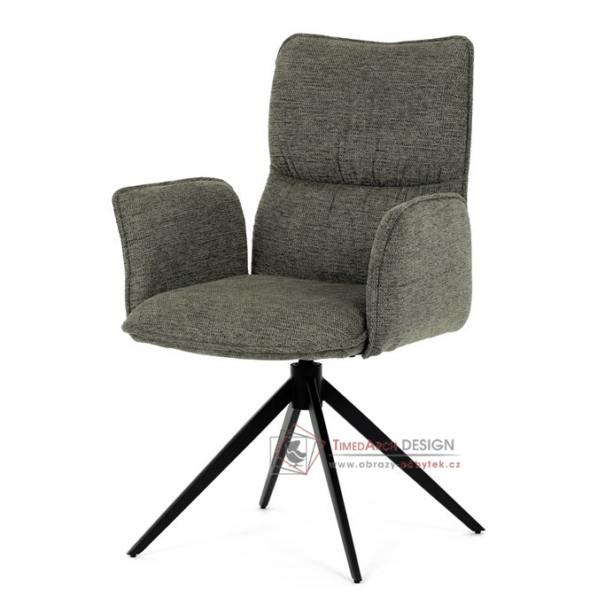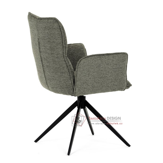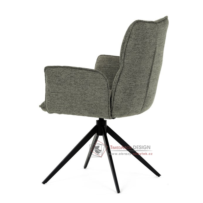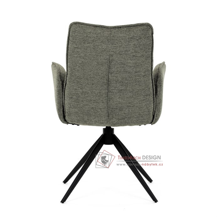Měkké čalounění z kvalitní látky s výplní z PU pěny poskytuje příjemné a komfortní sezení. Stabilní kovová základna v černé barvě zajišťuje pevnost a moderní vzhled. Vratný otočný mechanismus 360° umožňuje snadnou manipulaci a automatický návrat židle do původní polohy. Praktické područky zvyšují komfort při sezení. Tato židle je perfektní volbou do každé jídelny, která hledá stylový a praktický doplněk.