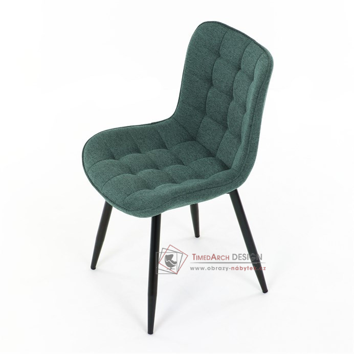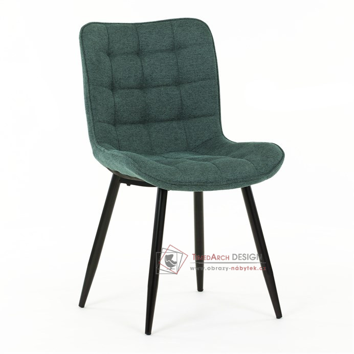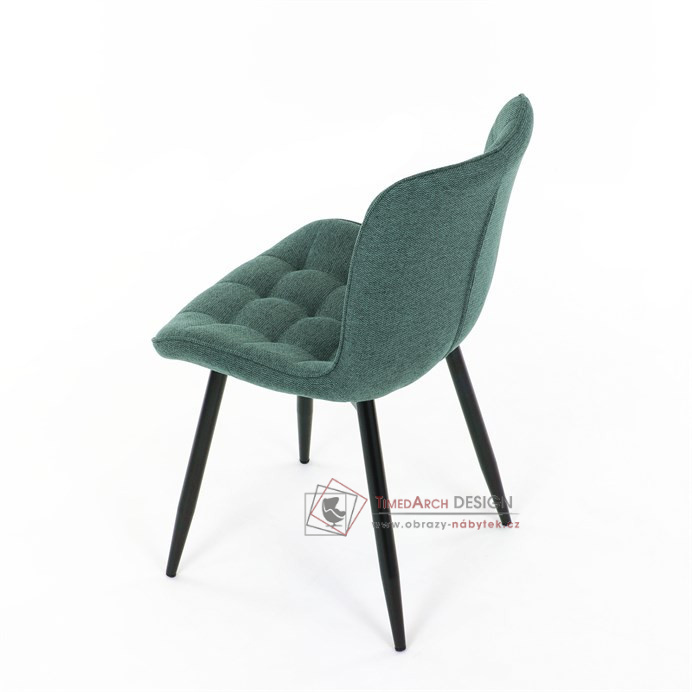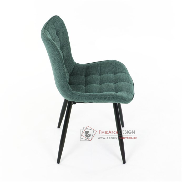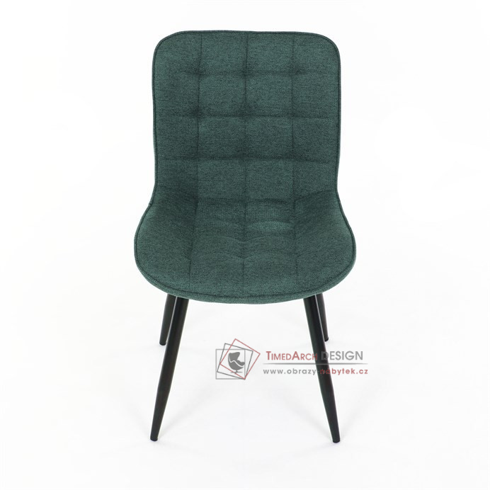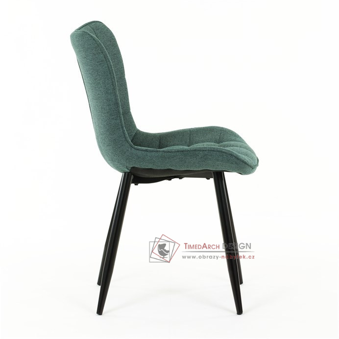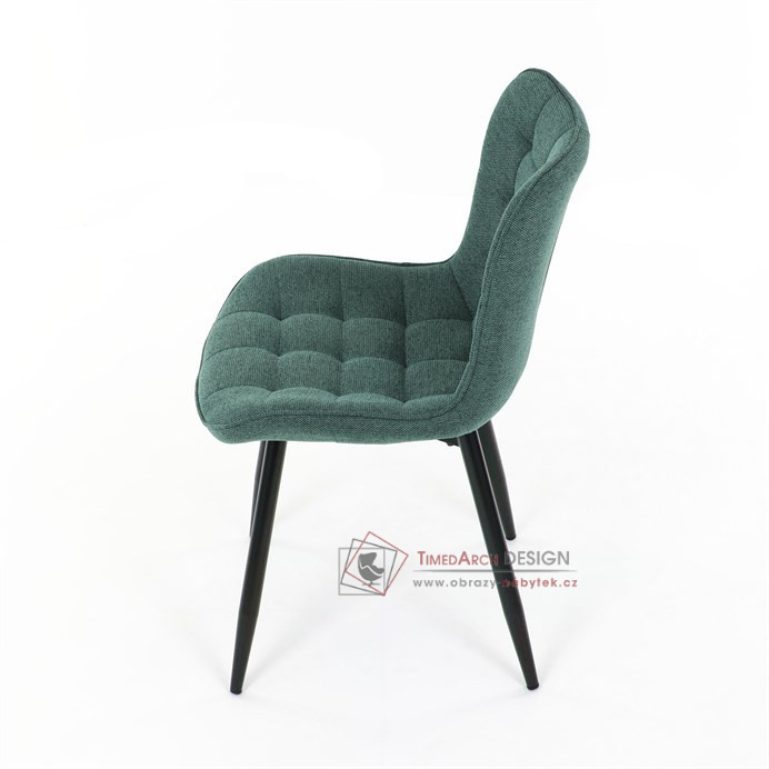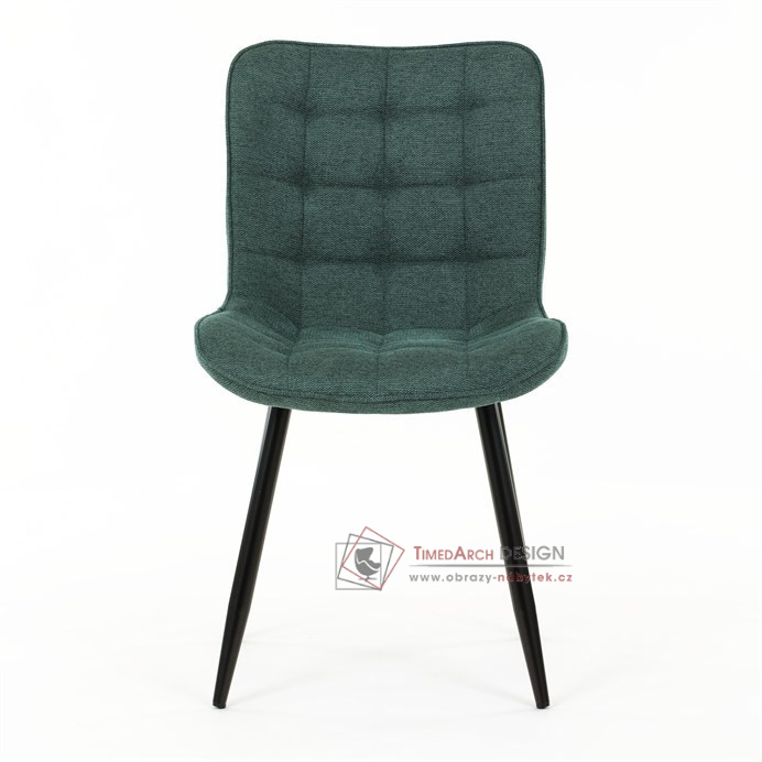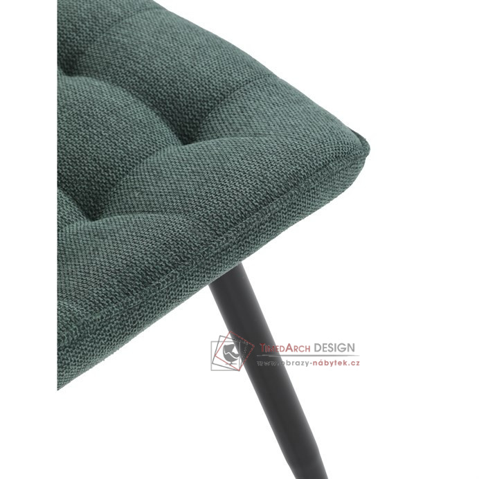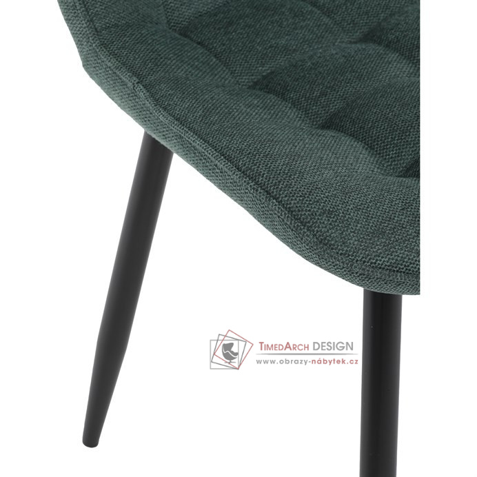 Zelené čalounění z kvalitní látky je nejen příjemné na dotek, ale díky ozdobnému prošití do čtverců také vyniká esteticky. Stabilitu a trvanlivost zajišťují kovové nohy, které dodávají moderní vzhled a dlouhou životnost. Tato židle bez područek kombinuje funkčnost a styl pro každý interiér.