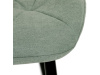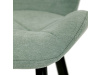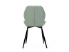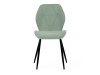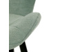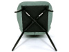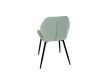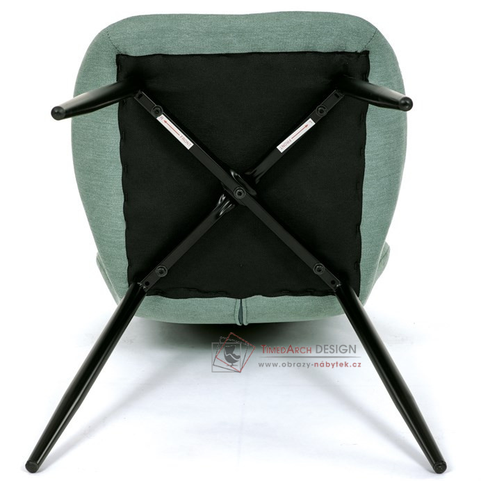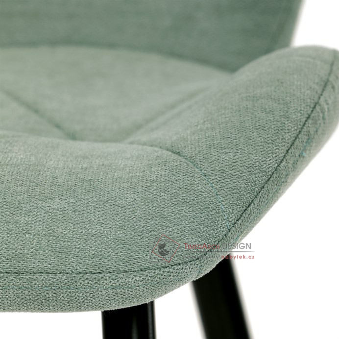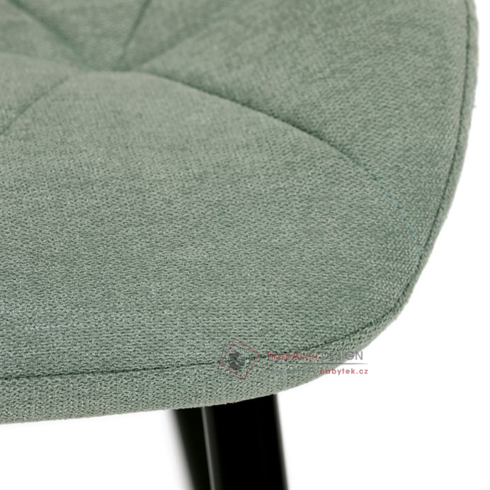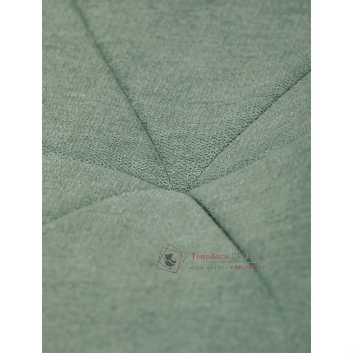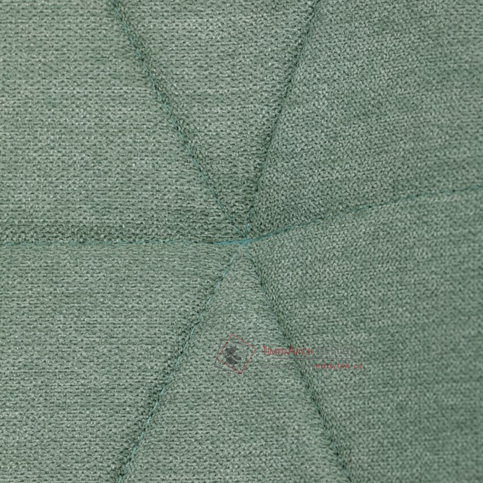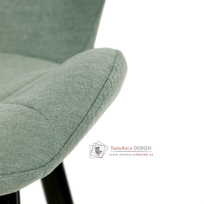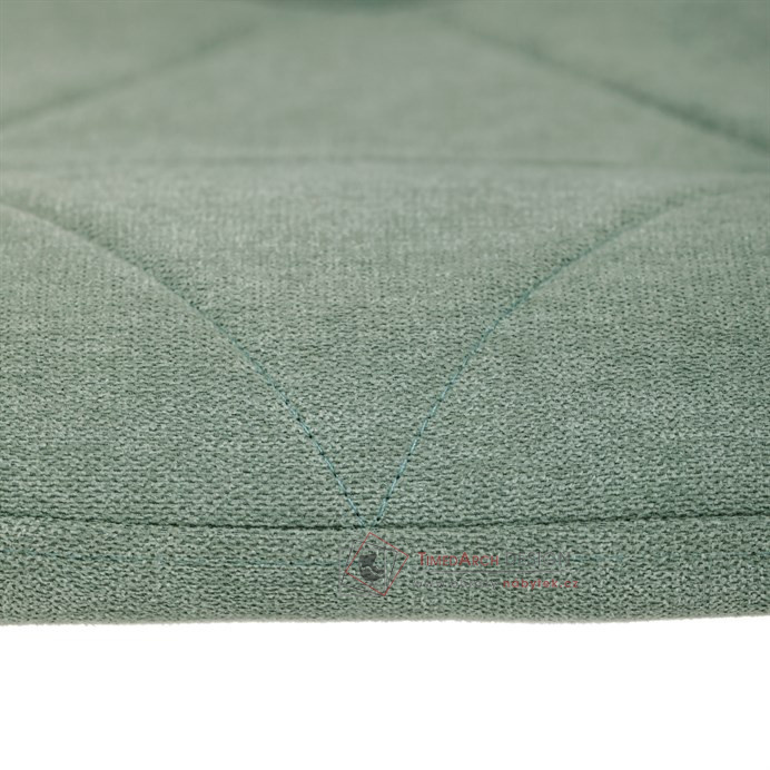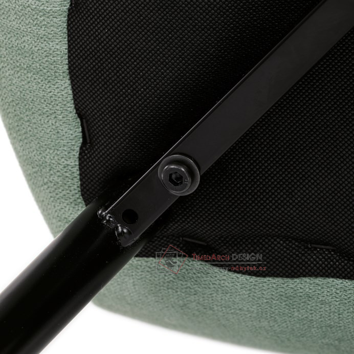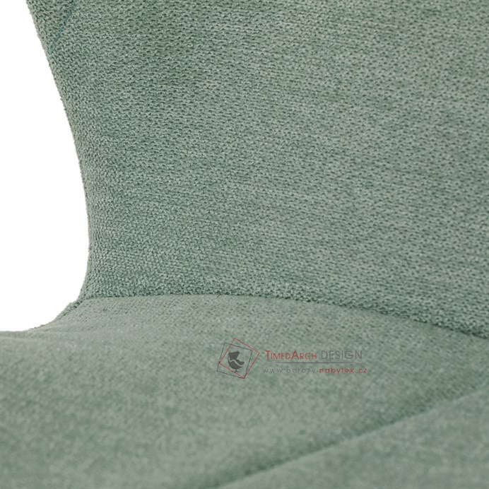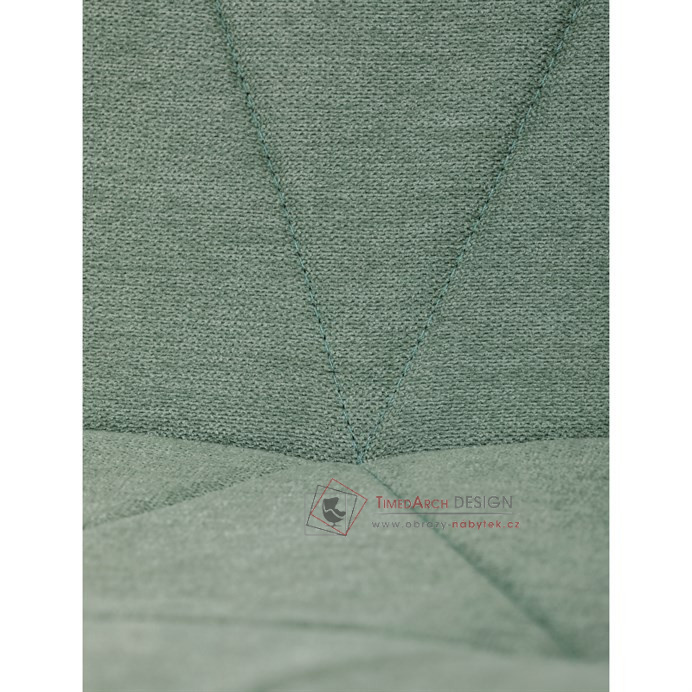 Sedák a opěrák židle tvoří skořepina specifického tvaru očalouněná prošitou látkou barvy zelené.