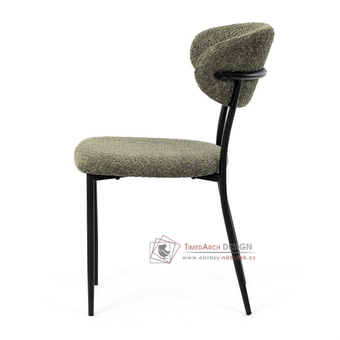 Čalounění z příjemné látky Bouclé dodává židli moderní a zároveň útulný vzhled, který skvěle zapadne do industriálních interiérů. Stabilní černé kovové nohy zajišťují pevnost a odolnost. Ergonomický tvar zádové opěrky a sedáku zaručuje pohodlí i při delším sezení. Minimalistický design a kvalitní zpracování dělají z této židle ideální volbu pro každodenní použití i slavnostní příležitosti.