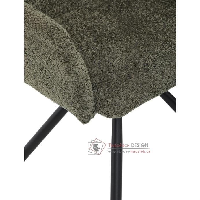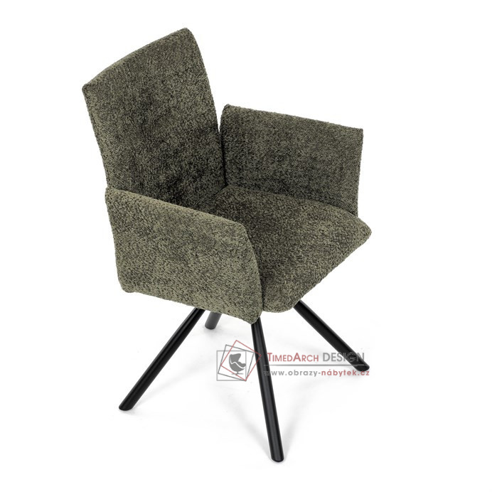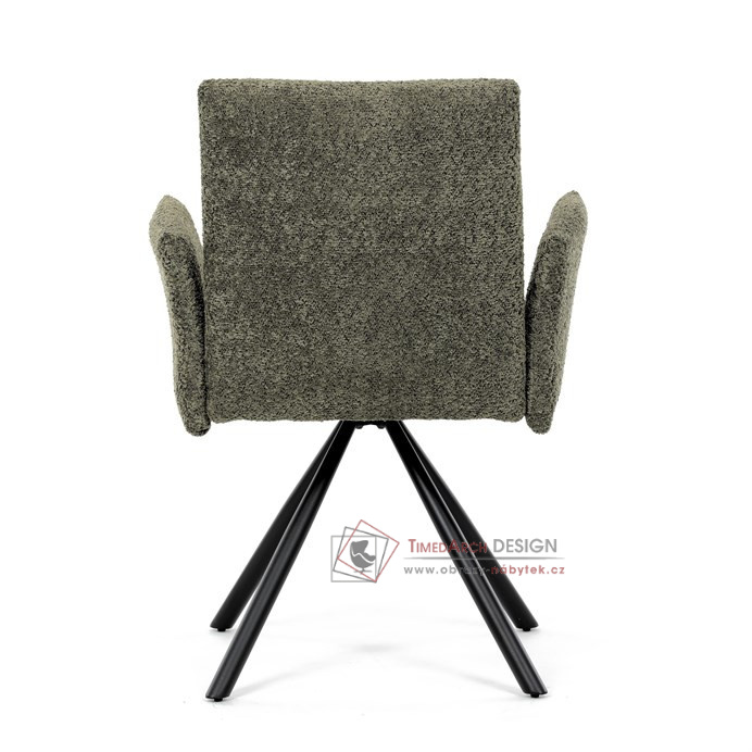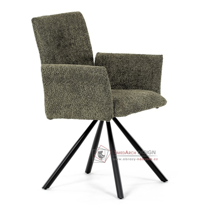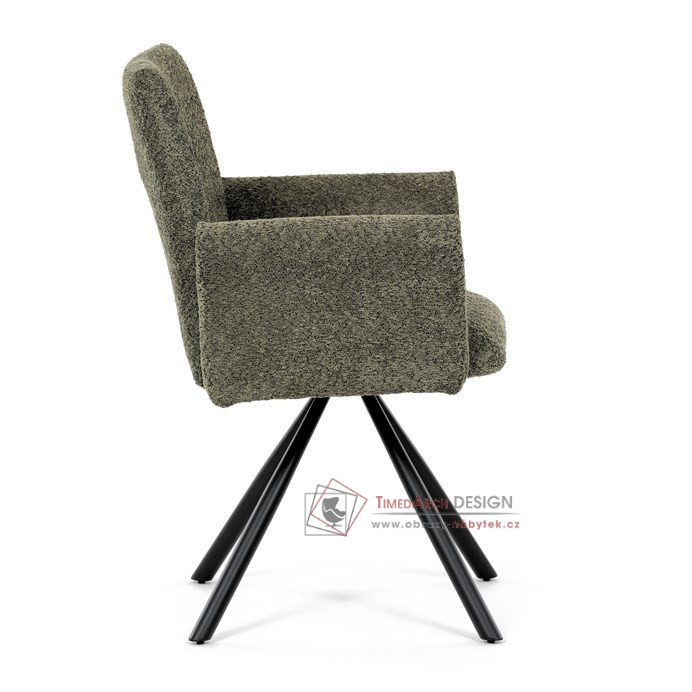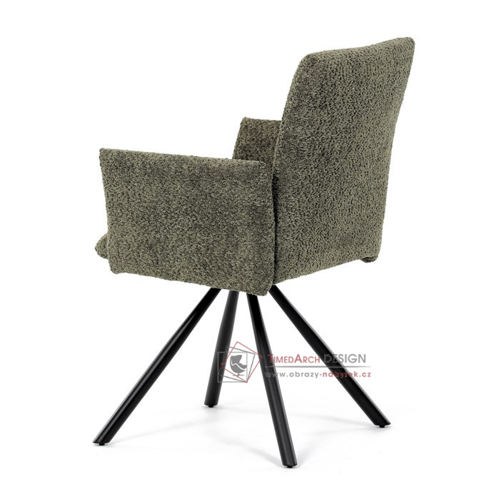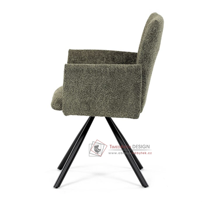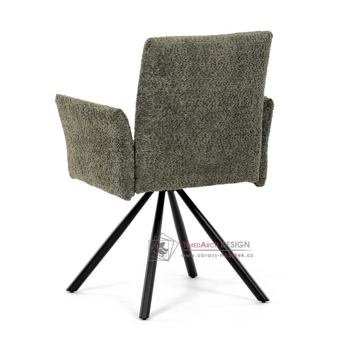 Otočná židle s robustní kovovou podnoží je vybavena pohodlnými područkami a látkou Bouclé, která zajišťuje příjemný a stylový vzhled. Polstrování z PU pěny nabízí měkké sezení, zatímco otočný mechanismus L90°/P90° s funkcí automatického vracení sedáku do základní polohy umožňuje snadné otáčení pro maximální flexibilitu. Černá kovová centrální podnož dodává židli stabilitu a moderní vzhled. Tato židle je ideální pro elegantní jídelny, kde se kombinuje komfort s moderním designem.