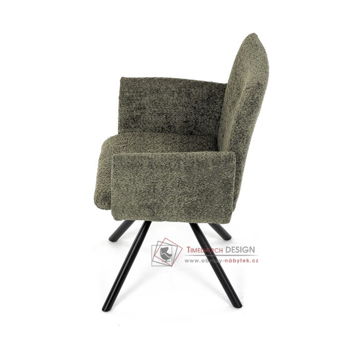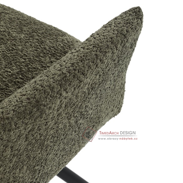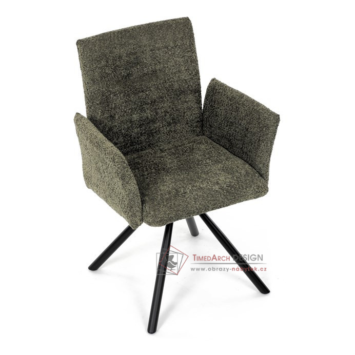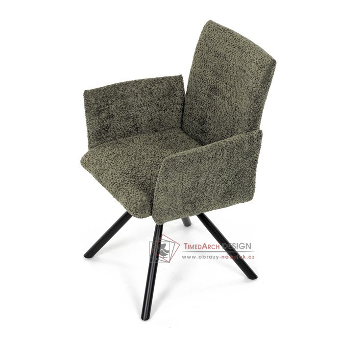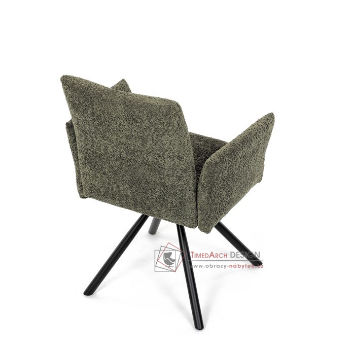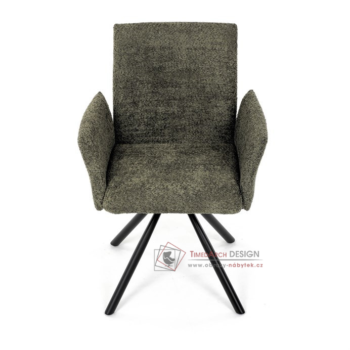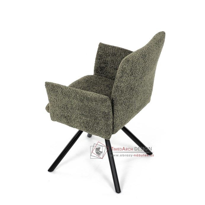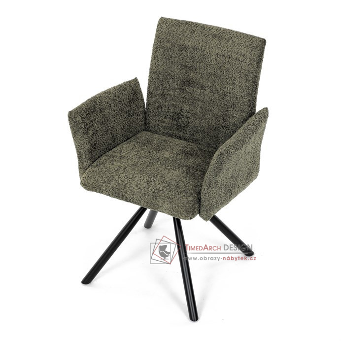 Otočná židle s robustní kovovou podnoží je vybavena pohodlnými područkami a látkou Bouclé, která zajišťuje příjemný a stylový vzhled. Polstrování z PU pěny nabízí měkké sezení, zatímco otočný mechanismus L90°/P90° s funkcí automatického vracení sedáku do základní polohy umožňuje snadné otáčení pro maximální flexibilitu. Černá kovová centrální podnož dodává židli stabilitu a moderní vzhled. Tato židle je ideální pro elegantní jídelny, kde se kombinuje komfort s moderním designem.