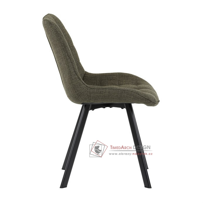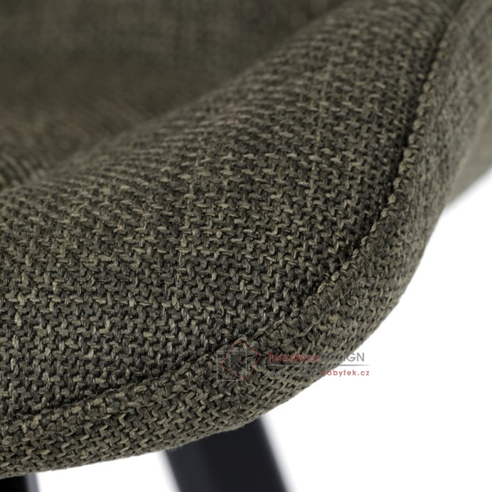 Sedák a opěrák je očalouněný látkou zelené barvy.