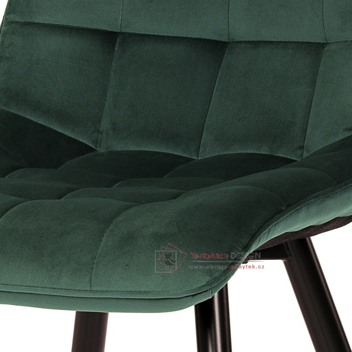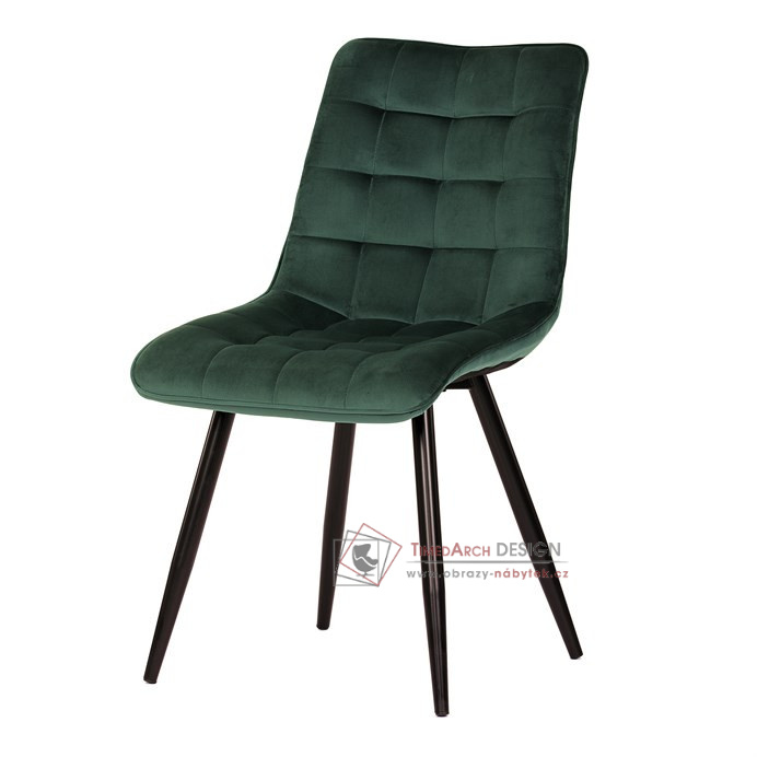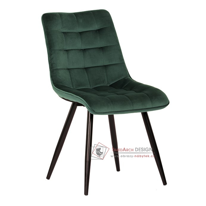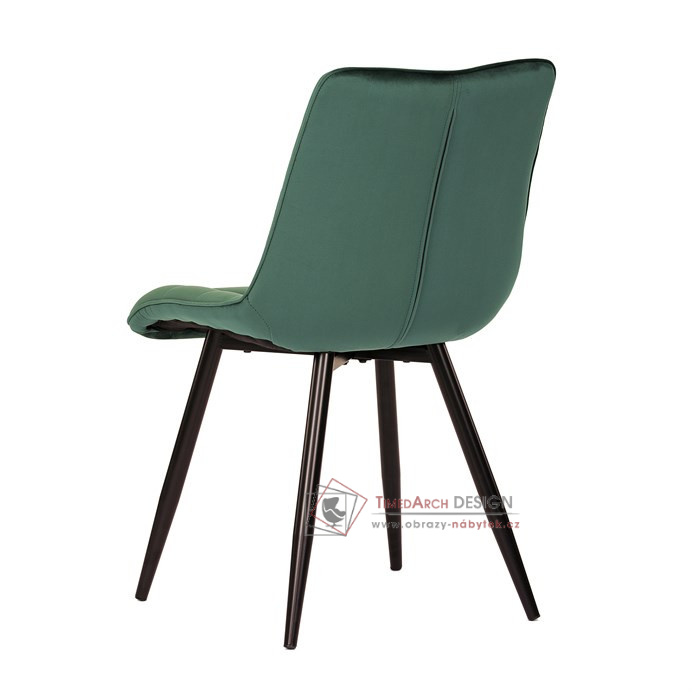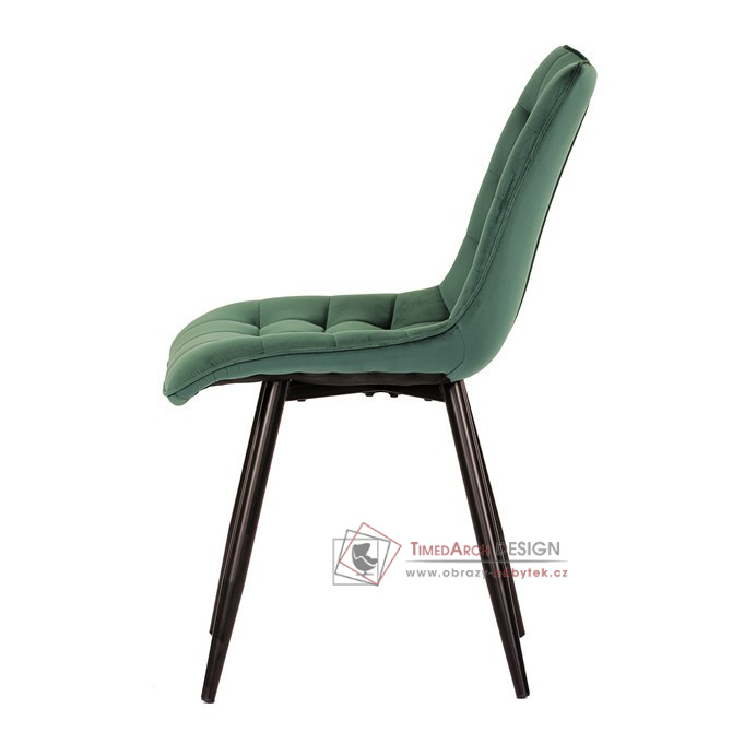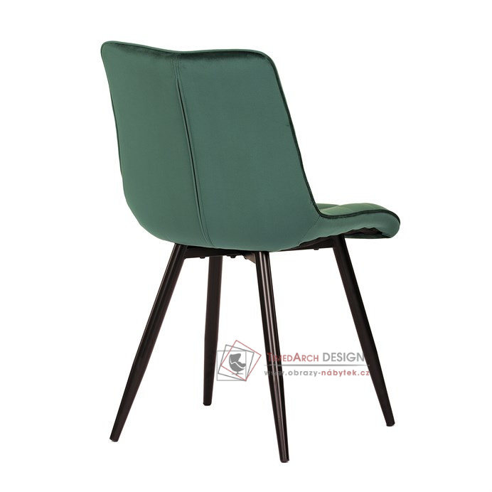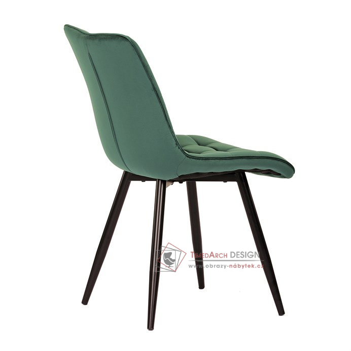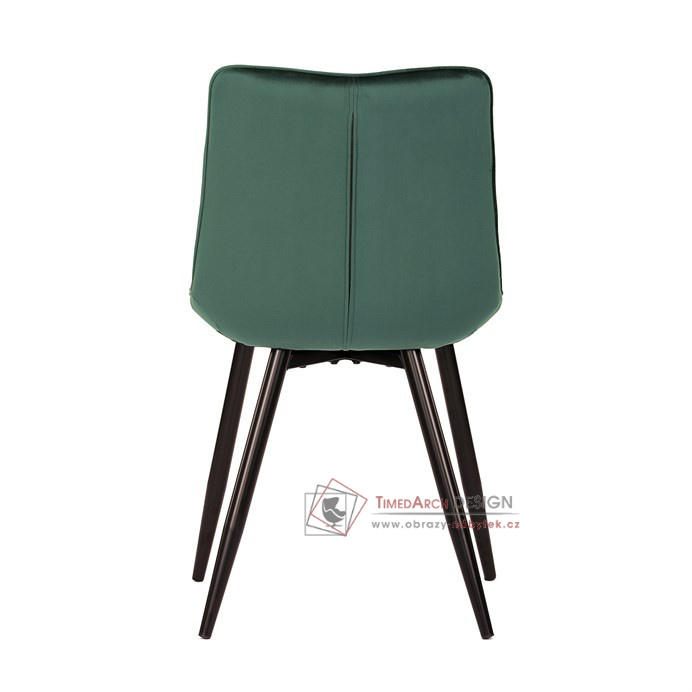 Moderní jídelní židle je potažena do hebkého sametu v zelené barvě.