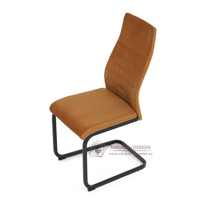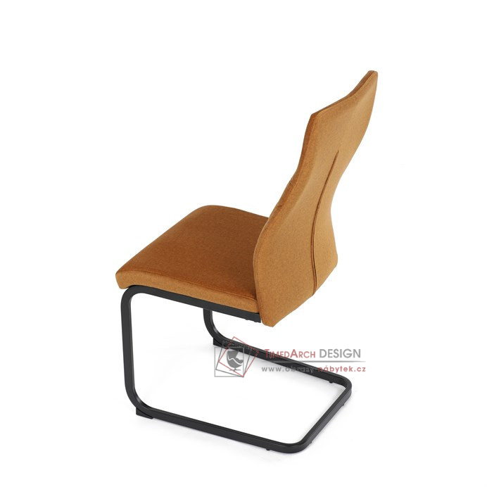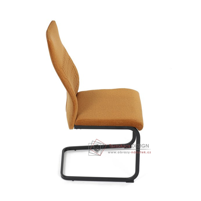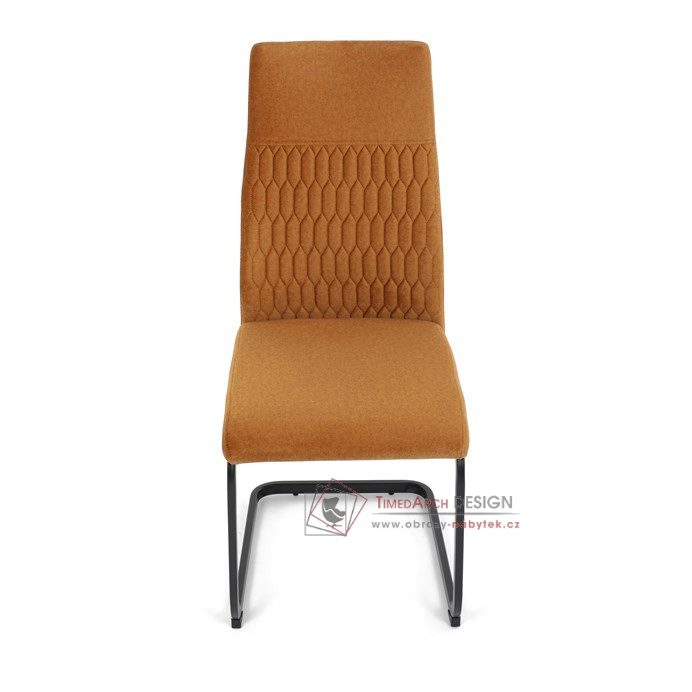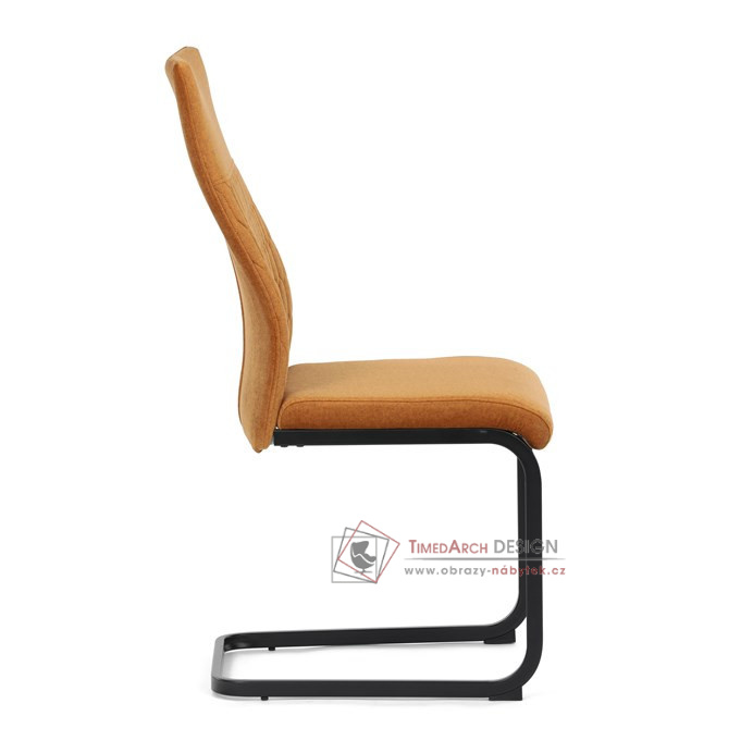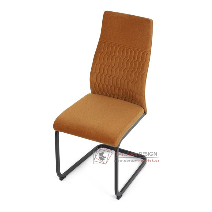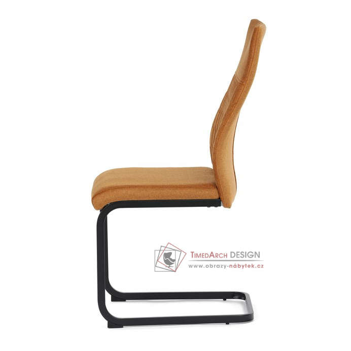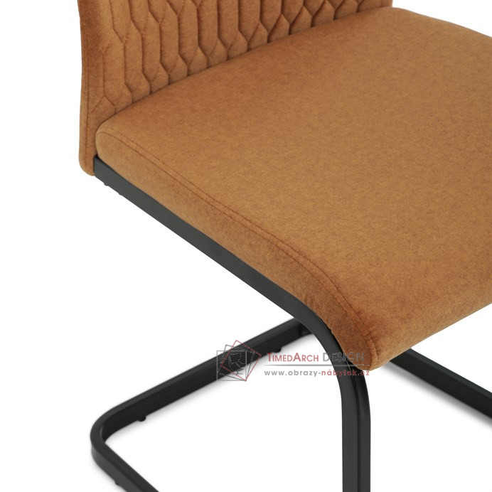 Komfort zajišťuje látkové čalounění a kovové nohy pro pevnost a stabilitu. Elegantní prošití dodává jídelní židli atraktivní vzhled, který se hodí do moderních interiérů. Tento designový kousek je čistým spojením stylu a funkčnosti.