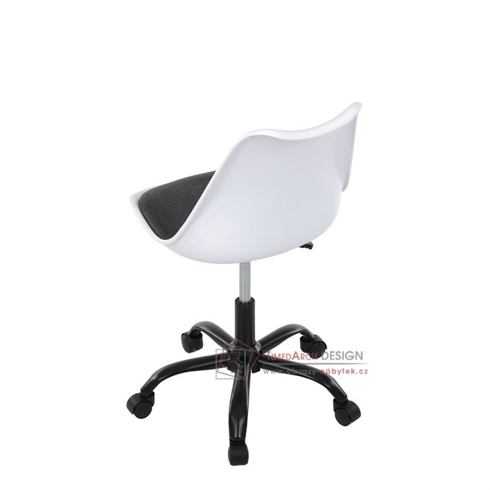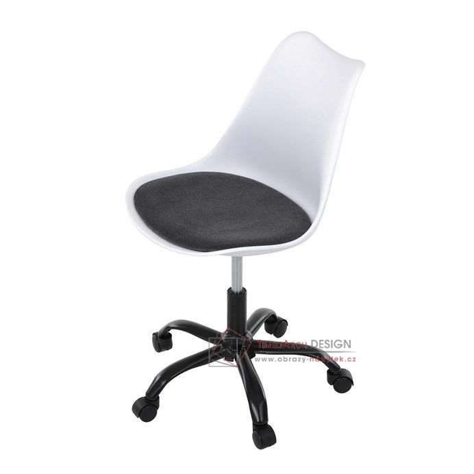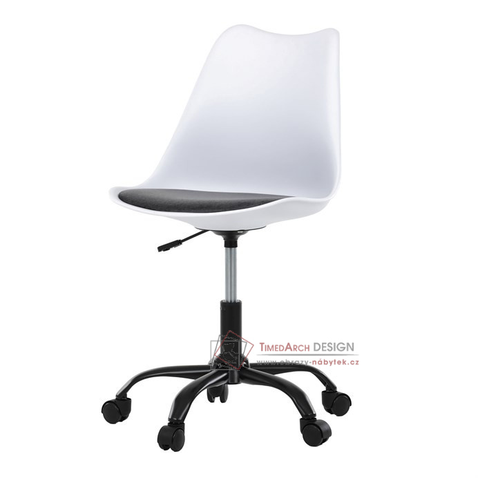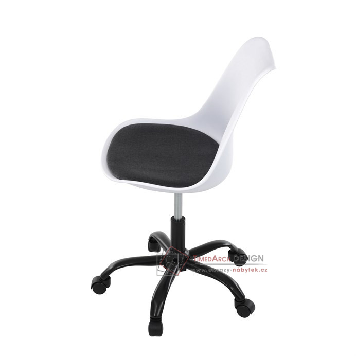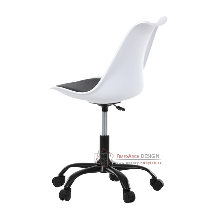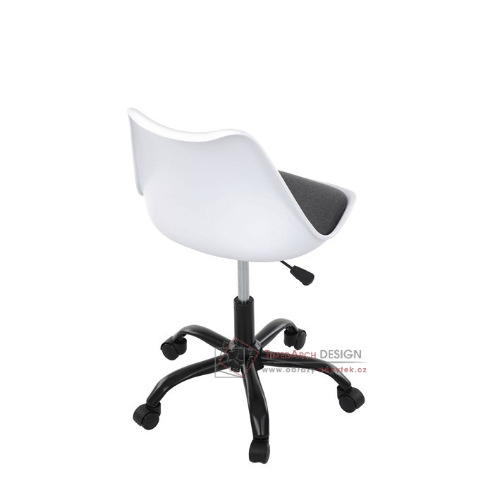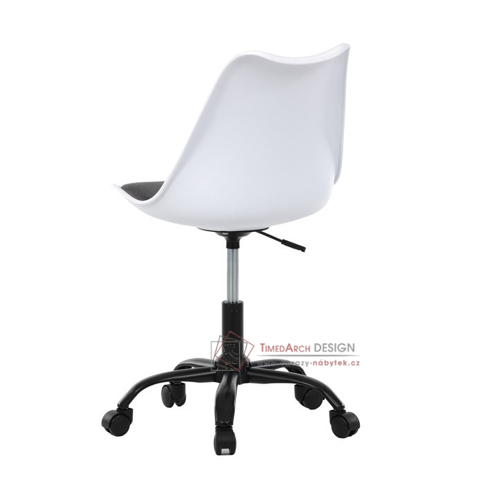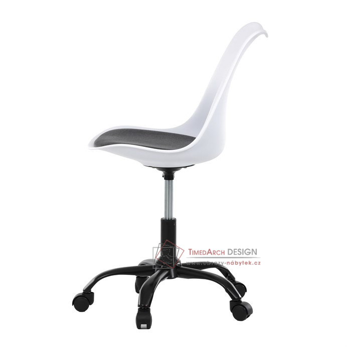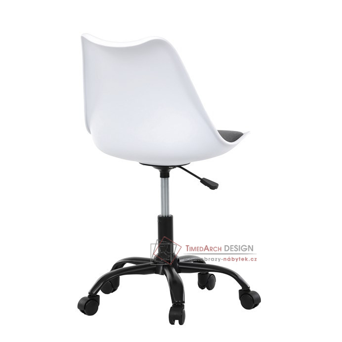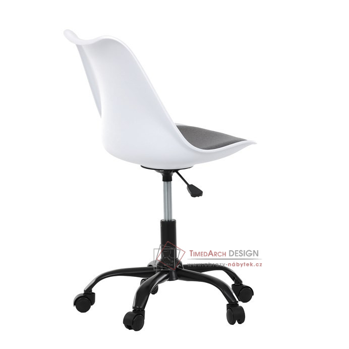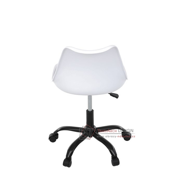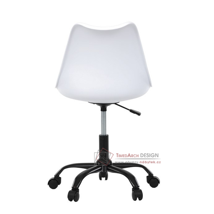 Bílý plastový materiál zajišťuje snadnou údržbu a dlouhou životnost, zatímco kovový kříž zaručuje stabilitu a pevnost. Židle je výškově nastavitelná, což umožňuje pohodlné sezení. Integrovaný měkčený sedák poskytuje zvýšený komfort během dlouhých pracovních hodin.