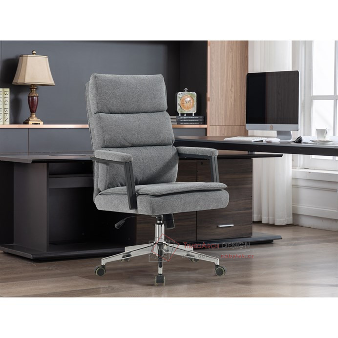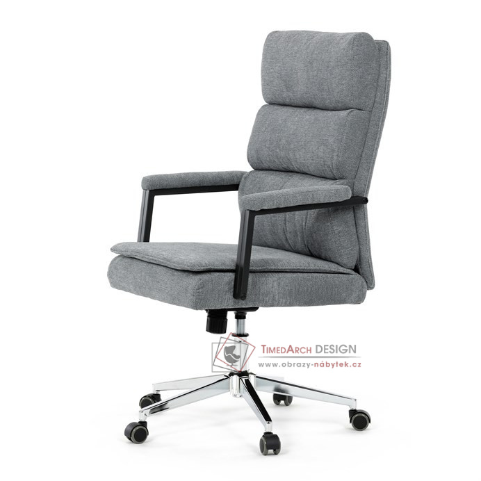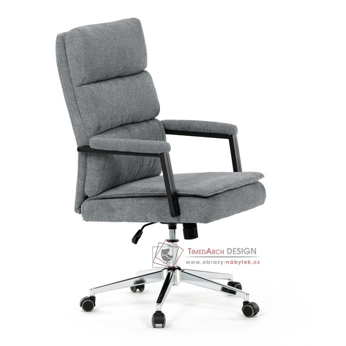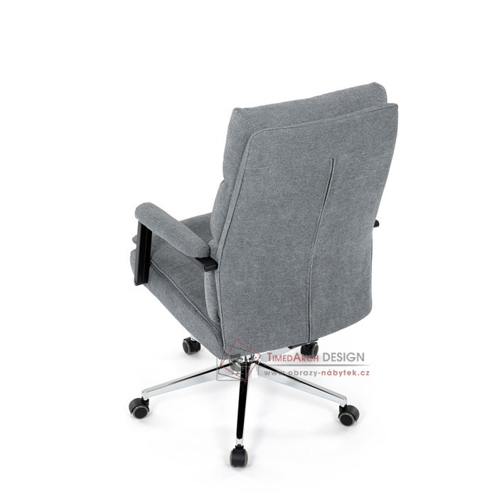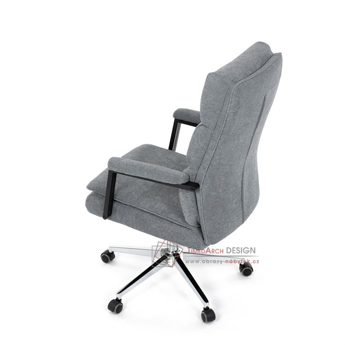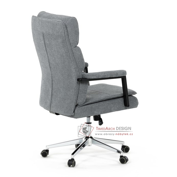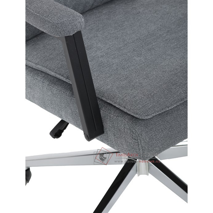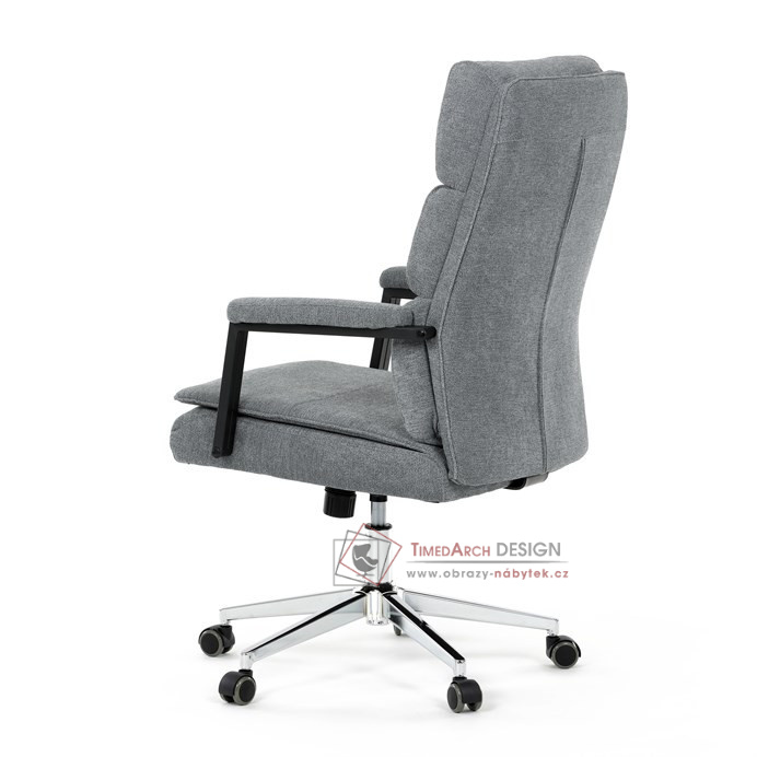 Potah z hladké látky v příjemném odstínu šedé dodává interiéru svěží a stylový vzhled, zatímco čalouněné područky a dvojitý sedák zaručují maximální komfort i při dlouhém sezení. Chromovaný kříž a pevná konstrukce dodávají židli stabilitu a odolnost. Díky houpacímu mechanismu se židle přizpůsobí vašim potřebám a zajistí potřebné uvolnění během práce. Ideální volba pro moderní kanceláře či domácí pracovny.