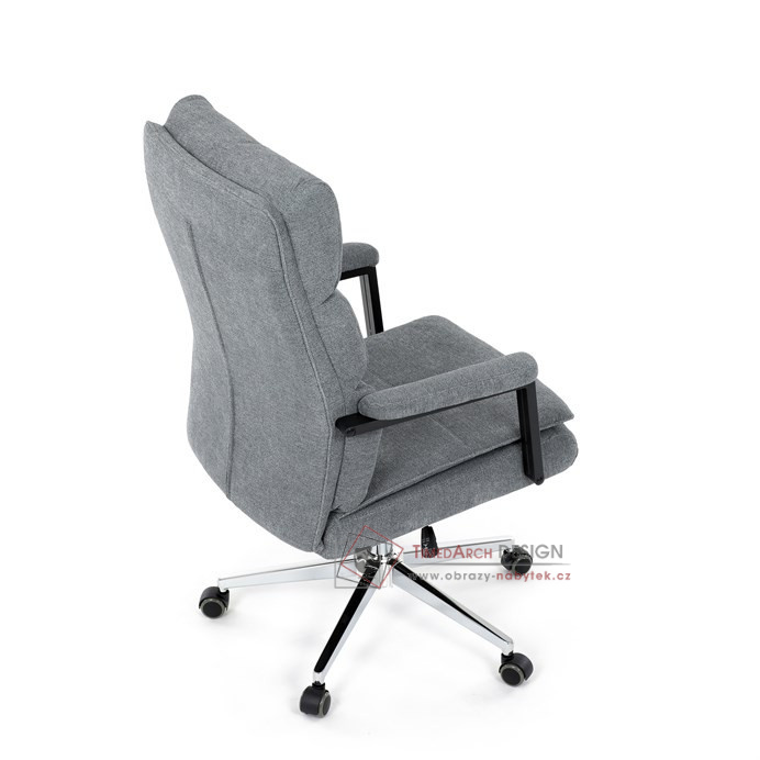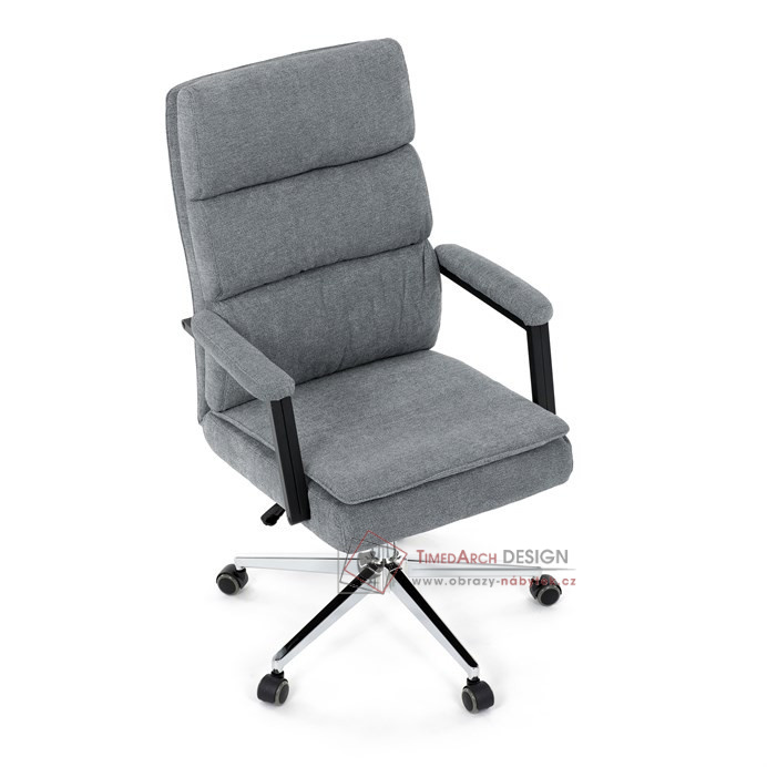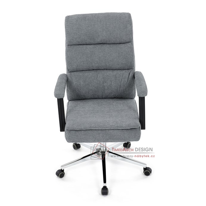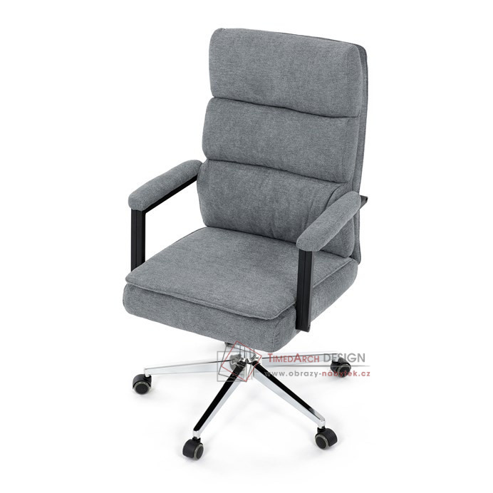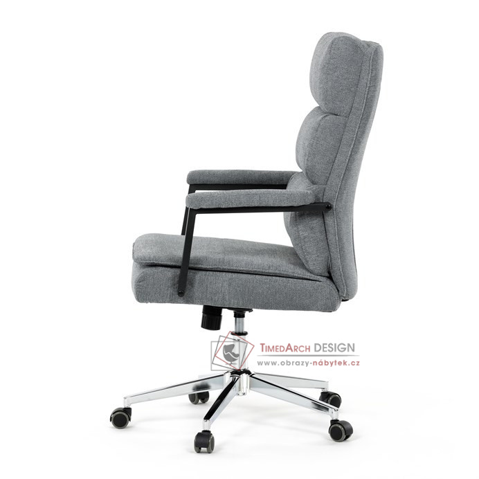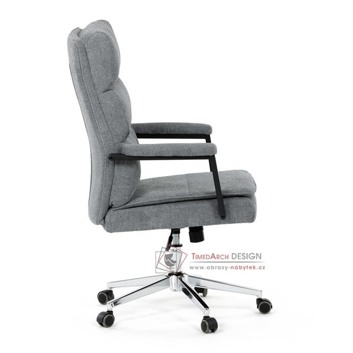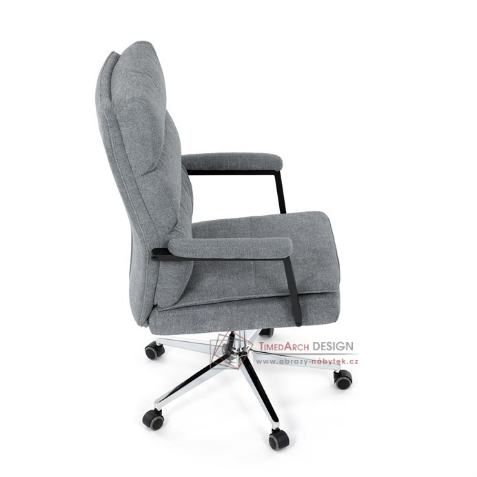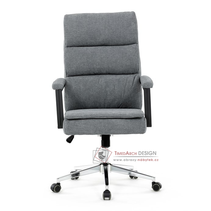 Potah z hladké látky v příjemném odstínu šedé dodává interiéru svěží a stylový vzhled, zatímco čalouněné područky a dvojitý sedák zaručují maximální komfort i při dlouhém sezení. Chromovaný kříž a pevná konstrukce dodávají židli stabilitu a odolnost. Díky houpacímu mechanismu se židle přizpůsobí vašim potřebám a zajistí potřebné uvolnění během práce. Ideální volba pro moderní kanceláře či domácí pracovny.