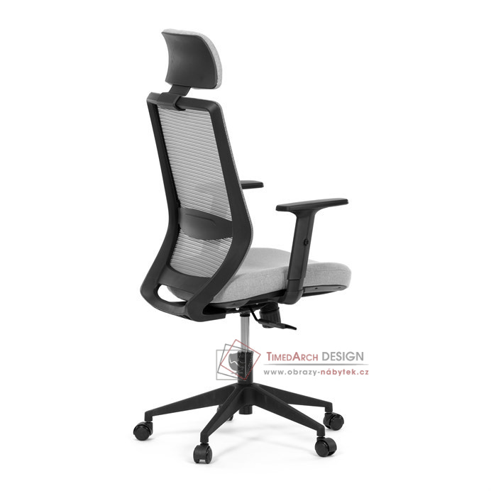 Elegantní síťovina zajišťuje optimální prodyšnost. Díky synchronní mechanice a výškově nastavitelné opěrce hlavy se snadno přizpůsobí různým postavám i potřebám každého uživatele . Komfort zvyšuje bederní opěrka, která podporuje správnou polohu zad během dlouhého sezení. Židle je navržena s důrazem na ergonomii, což zaručuje pohodlí po celý den.