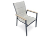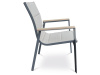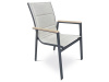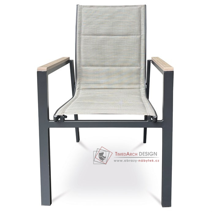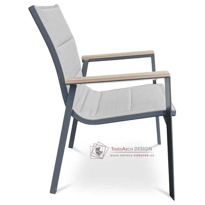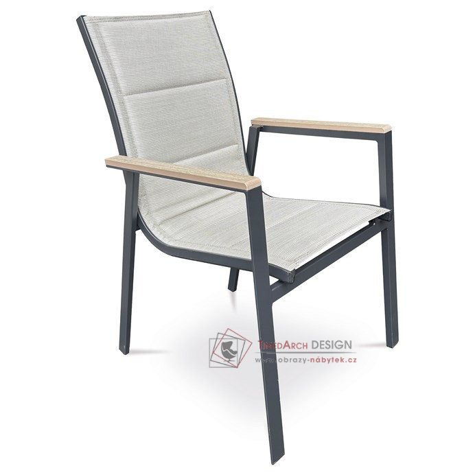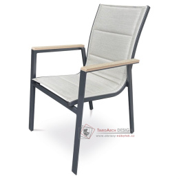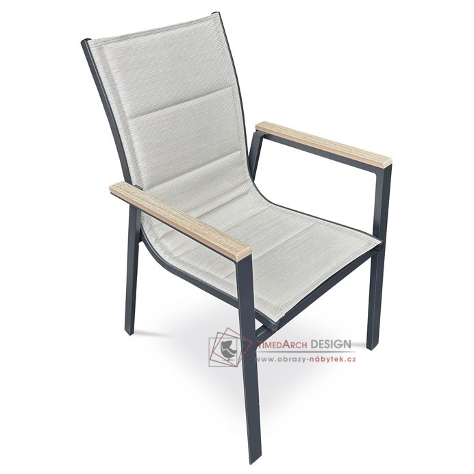 Její konstrukce je z odlehčeného hliníku, který zajišťuje nejen pevnost, ale také vysokou odolnost proti korozi, což oceníte při dlouhodobém používání venku. Sedák a opěradlo jsou potaženy kvalitním textilem s pěnovou výplní, která poskytuje maximální komfort.